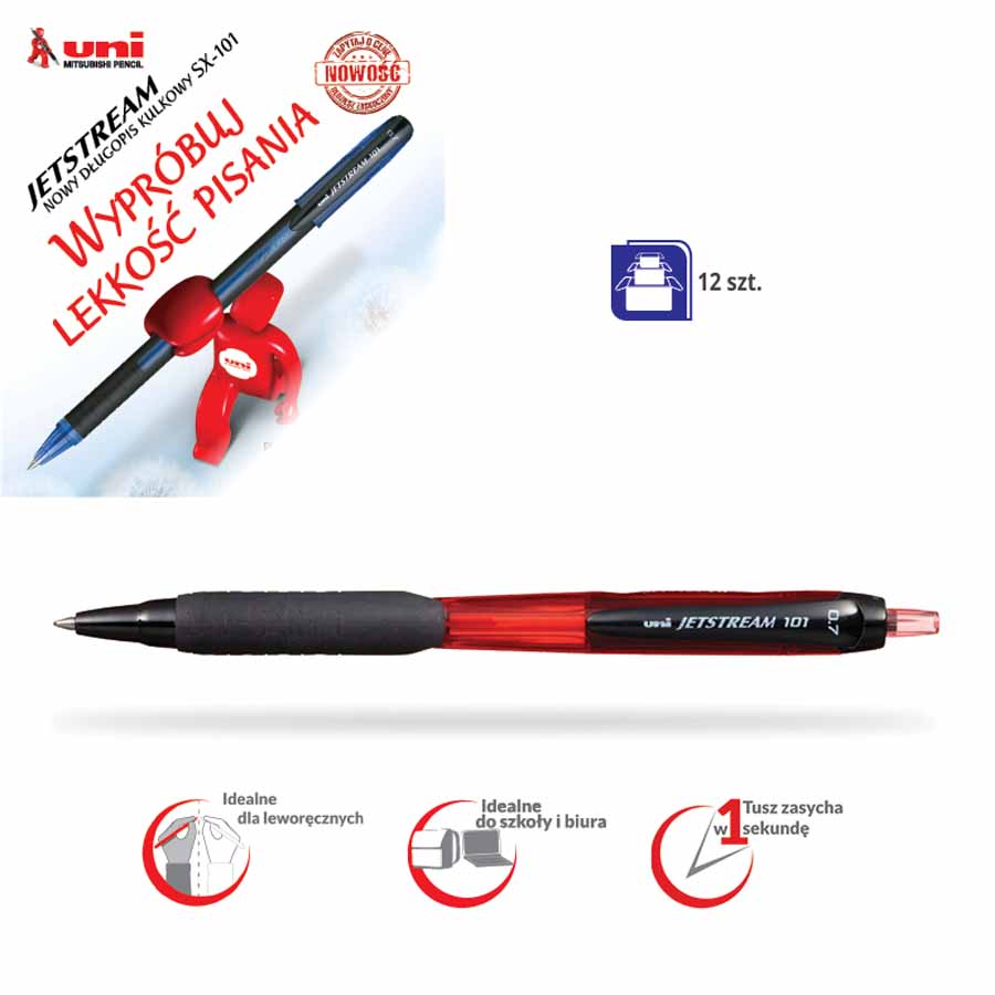 - rewolucyjny tusz ULV - długopis wręcz "płynie" po papierze a jednocześnie błyskawicznie wysycha dzięki czemu tusz się nie rozmazuje