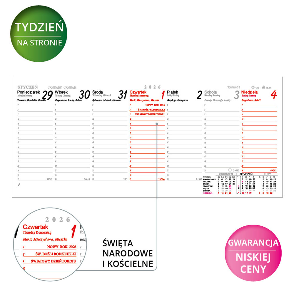 Kalendarz biurkowy poziomy DC