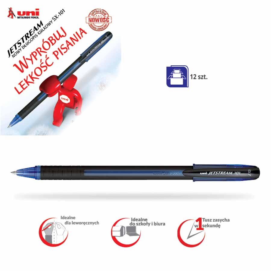 - rewolucyjny tusz ULV - długopis wręcz "płynie" po papierze a jednocześnie błyskawicznie wysycha dzięki czemu tusz się nie rozmazuje