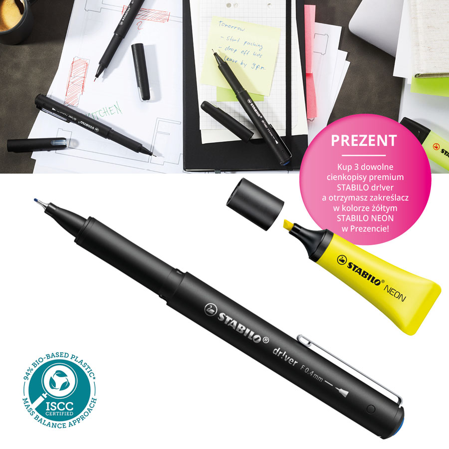 jm.: szt kup 3 dowolne cienkopisy premium STABILO dr!ver a otrzymasz zakreślacz w kolorze żółtym STABILO NEON w Prezencie !