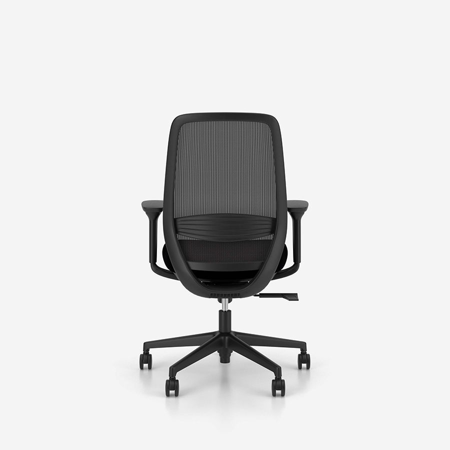 - siatkowe oparcie dba o wentylację pleców, a tapicerowane siedzisko z plastikową osłoną gwarantuje komfort nawet przez wiele godzin